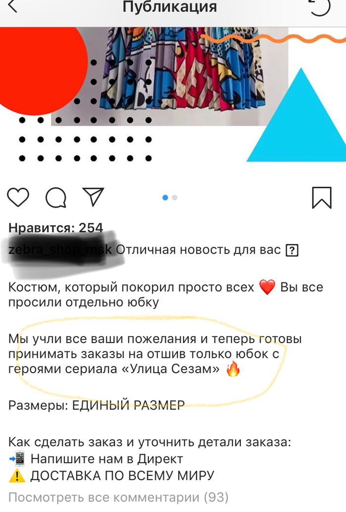Поехали, подписался тут на меня в Инстаграм маленький, но гордый магазинчик с одеждой, захожу, читаю описание: «Мы не следуем чужим трендам, а создаём свои. ОТШИВАЕМ ваши творческие идеи»: