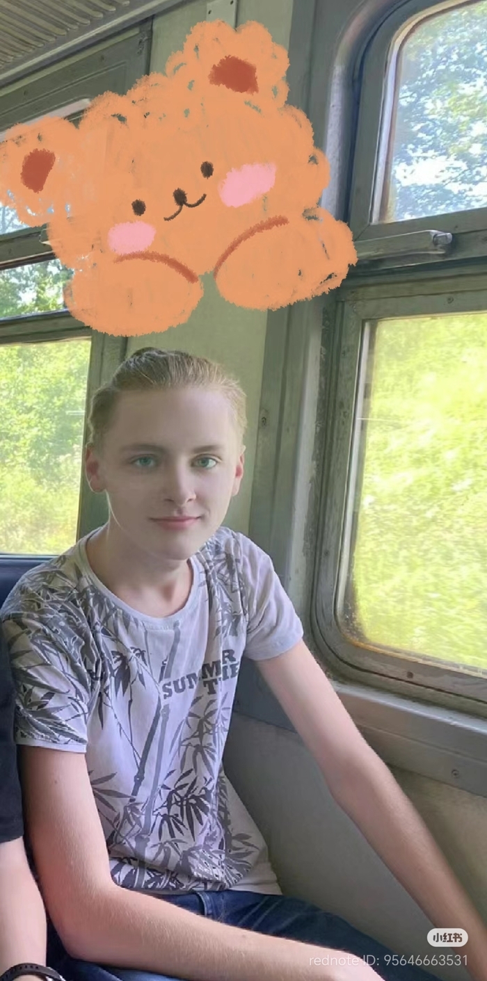 Маленькая девочка в комнате была большой дурой. Мармеладный мишка на картинке Лао Лао. Я постеснялся спросить его контактную информацию Лао Лао, этот русский мальчик, это я слева. Мы сели в поезд из Комсомола в небольшой городок Сергиев Посад на окраине Москвы на маленьком поезде Так как я не понимал по-русски, мы с мамой не знали, на какой остановке едем, поэтому мы попросили его о помощи. Он очень хороший человек! Несмотря на то, что мы не могли общаться на одном языке, они все равно с большим энтузиазмом помогали нам и следили за автобусными остановками по пути, напоминая нам о необходимости выходить, когда мы приезжали на нужную остановку. Супер-супер-красавчик! У славянского красавца были желтые волосы, относительно длинные и заплетенные в небольшую косичку. Это было в июле 2024 года. Я постеснялся добавить его в друзья.