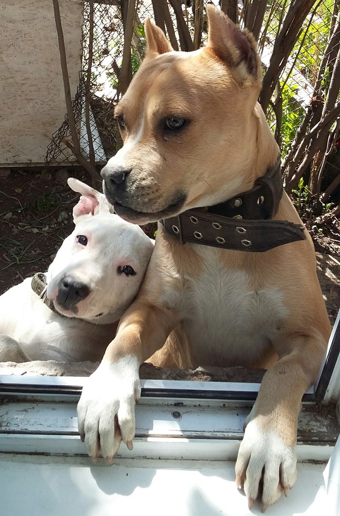 И что касается киборгов и собак убийц. Шутки шутками но половина историй про эту "кровожадную" породу выдумка, а вторая половина - вина неадекватных хозяев. Что поделать, придурки есть везде. В принципе любую собаку нужно заводить из большой любви и готовности к не менее большой ответственности и это нормально. Это позиция адекватного взрослого человека. Потому что от этого зависит вся жизнь собаки, ее не выкинешь на мусорку. Наших собак знают и любят все дети с района, они могут их гладить и тискать, максимум что им за это будет- зализанные руки. Конечно они и охранники и могут рычать и гавкать, но когда ситуация не касается их территории- это малейшие создания.