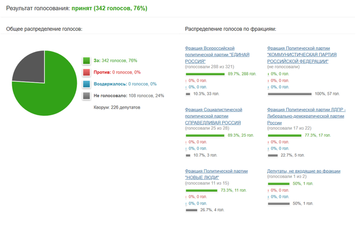 Результат голосования по закону N 216-ФЗ от 08.08 2024 г. "О внесении изменений в Федеральный закон «Об информации, информационных технологиях и о защите информации» и отдельные законодательные акты Российской Федерации (в части уточнения информации, распространение которой в Российской Федерации запрещено)"