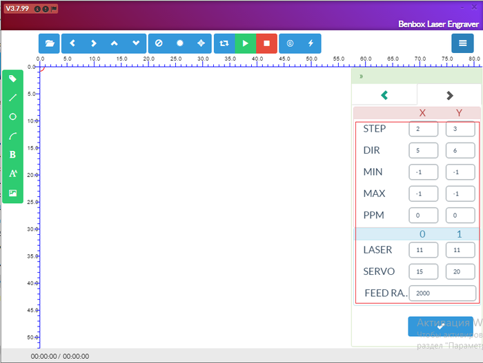 Для прожига ставил скорость 100, но скорость холостого хода так же становилась 100 а не как забито 2000. Заявленная мощность лазера 10Вт но даже после 5 запусков по намеченному чертежу фанеру 4 мм он не прожигал, максимум до половины если вручную увеличить толщину лазера. Конечно в этой связи есть небольшое чувство что меня кхх..кинули в плане мощности лазера. Но может и не в нем вопрос.