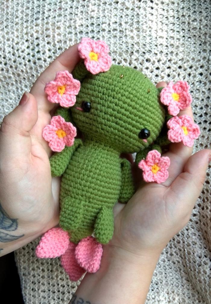 Очень захотелось сделать кого-то милого, и получился у меня аксолотль. Да не простой, а кактусик!