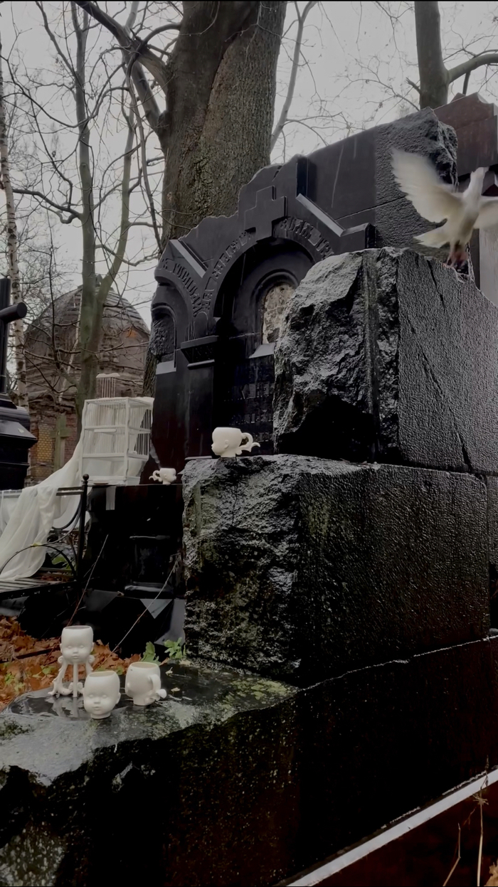 Будучи керамистом иногда приходится придумывать изощренные фотосессии для своих произведений, в этот раз мое подсознание остановилось на белой птице детских куклах и кладбище. Не буду описывать смысл этого набора история не об этом) В день покупки птиц на авито погода сказала перенести мероприятие на следующий день, поэтому пришлось оставить их в коробке как посоветовали разводчики. Показалось это немного жестоким но в клетке что мы купили места было даже меньше. Прошли сутки, и когда я открыла эту коробку меня чуть хватит паралич потому что все эти белоснежные голуби были в дерьме . Включив музыку погромче чтобы заглушить истерический смех мы принялись их отмывать. Но примерно спустя пару минут полка которая служила моим алтарем и хранилищем готовых заказов решила упасть. Разбив все что на ней было включая огромный лабораторный ртутный градусник. Описать что я испытала в этот момент ни сможет ни одно придуманное человеком слово, и единственное что я придумала это начать это все подметать заодно размазав ртуть по полу))))90))) После каким то образом мы еще смогли поехать на кладбище и сделать все таки задуманное, но вернувшись в мастерскую резкая тошнота и давление на мой череп изнутри в районе висков намекнуло все таки на вызов мчс))) Ну что ж как итог я выяснила что можно вызвать мчс чтобы помыть пол за 13 к чтобы не умереть, дополнительная информация о голубях как фабриках по производству дерьма, и калофобия до конца дней моих, и каникулы моей подруги в токсикологическом отделении, а я ? а что я, мне надо срочно лепить заказы и спасаться активированным углем) всем любовь и голуби