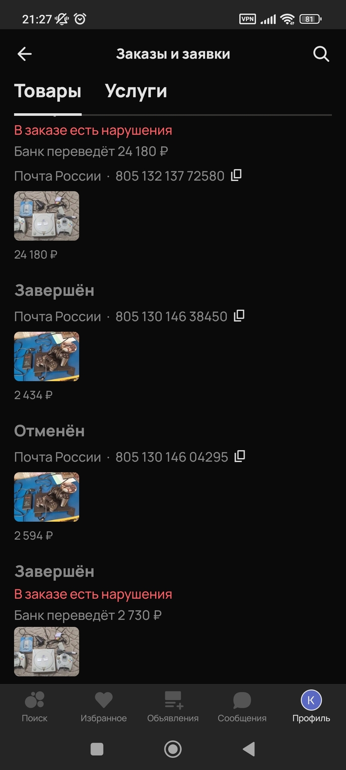 Авито я не понял а что вы меня и наверное других людей кошмарите? Какие бля нарушения, товар отправлен, Авито комиссию получила? Как говорили в фильме Иван Васильевич меняет профессию - что тебе ещё надо собака?