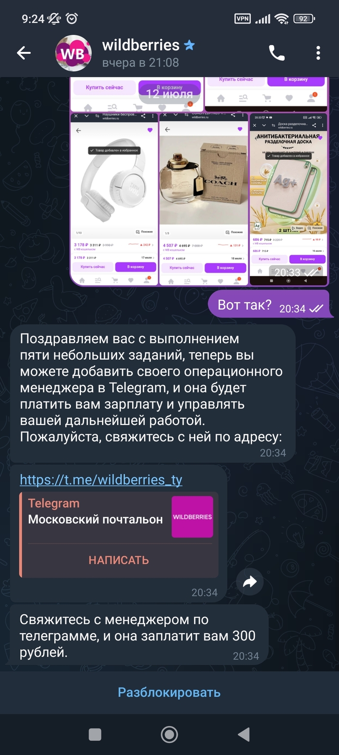 Суть в том что при согласии тебе дают якобы 5 тестовых заданий (ссылки) где нужно просто поставить лайк, сделать скриншот и отправить обратно. И за это в первый раз реально перечисляют деньги на карту банка по номеру телефона. Я так периодически делаю, а потом добавляю в черный список аккаунты мошенников и жду новых предложений.