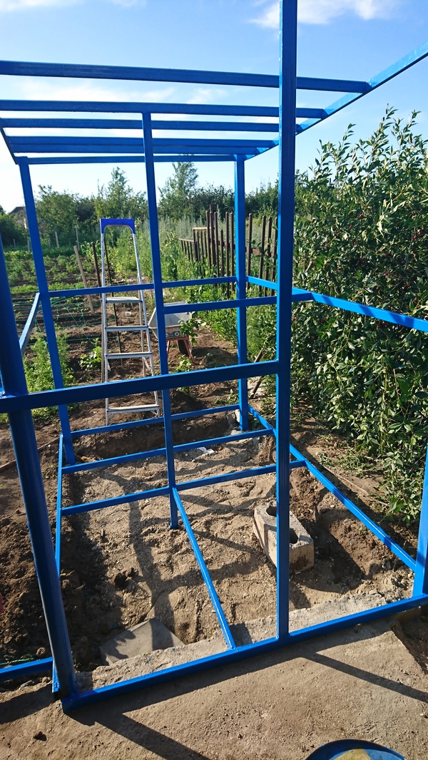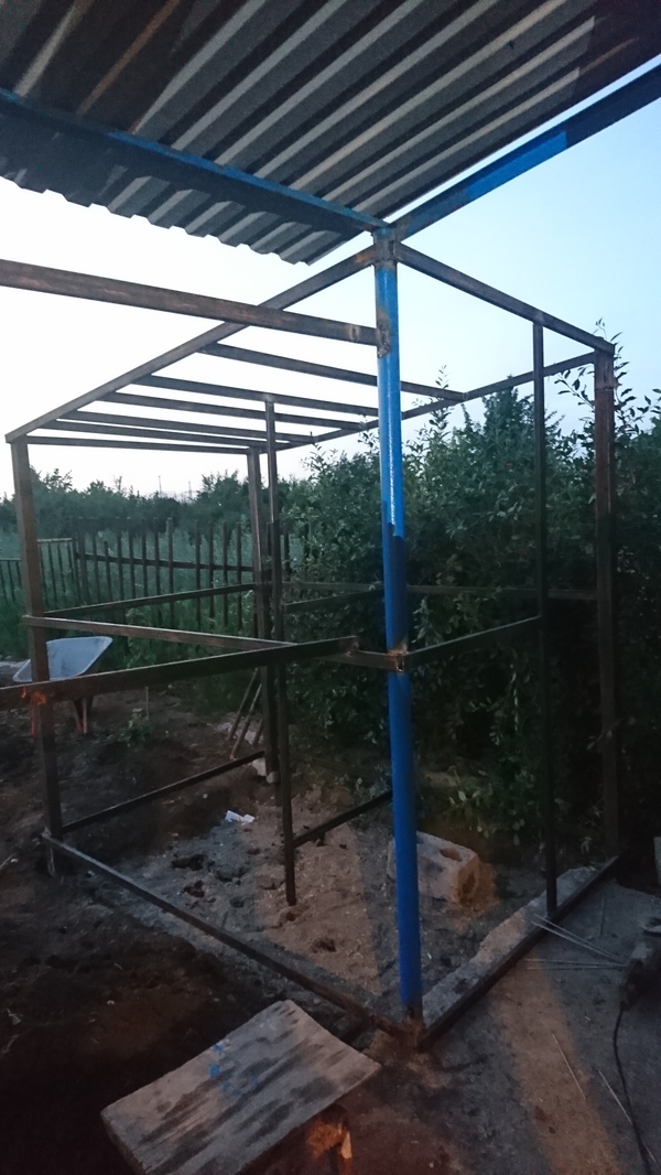 Закупил материал: Квадрат для стоек, прямоугольная труба, и профлист. Отдельно купил оцинкованный бак на 120 литров.