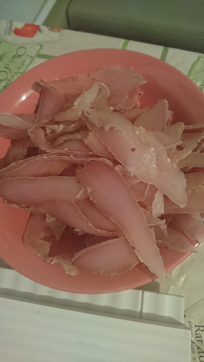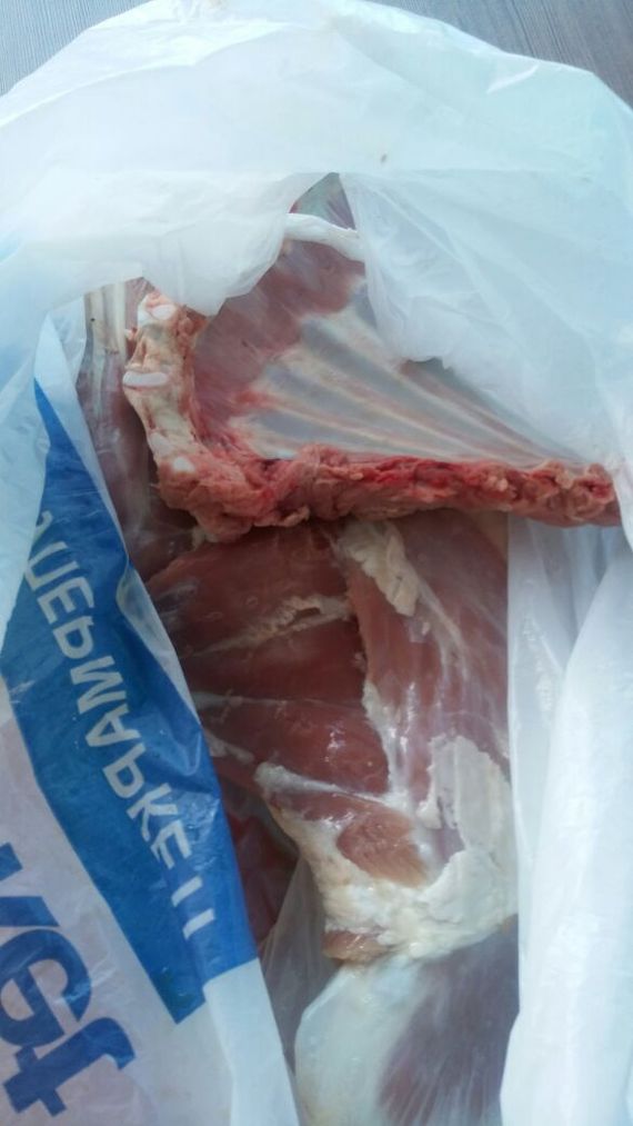 Резали соседи по даче барана, точнее ягненка полугодовалого, ну и перепало нам немного. Передняя нога с лопаткой и ребра.