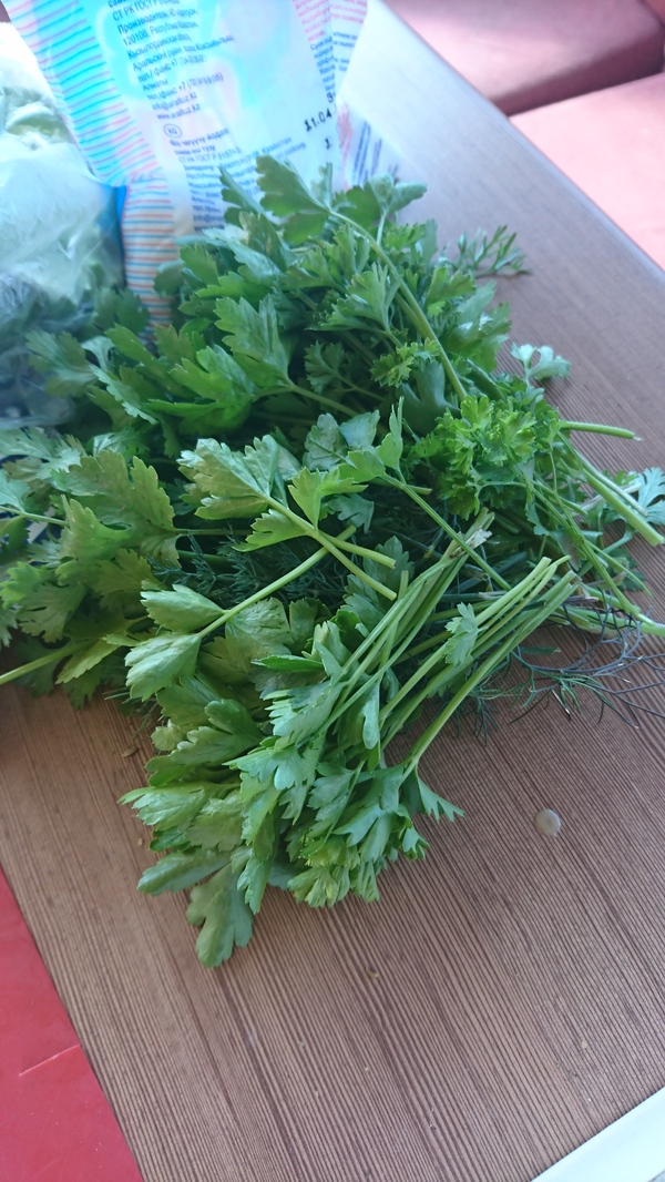 6. Зелень - нарвал все что было - Укроп, петрушка, сельдерей и кинзу. Кинза, кстати, для баранины почти как зира.