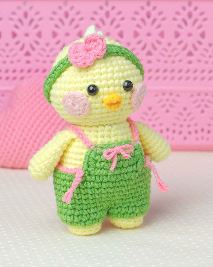 Пополняю гардероб уточки Лалафан. Связала комбинезон и повязку на голову.