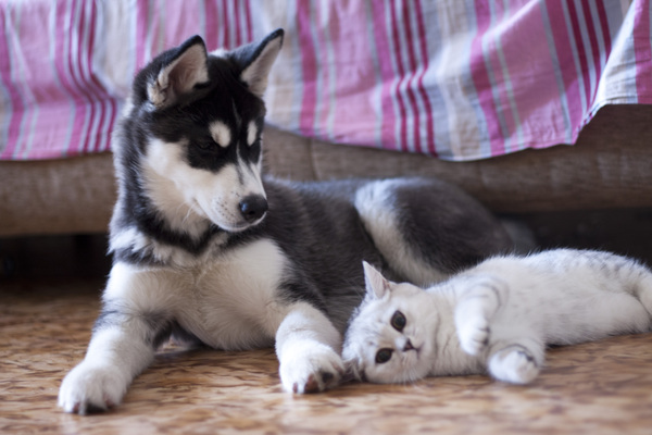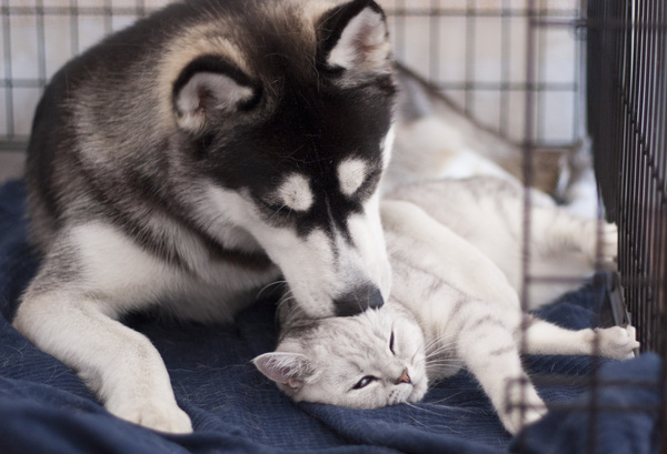 Хаски могут ужиться с другими домашними животными – собаками, кошками. Щенка легче приучить к соседству с квартирными соседями. При этом хаски обладают выраженным охотничьим инстинктом и при возможности собака будет нападать на уличных кошек, домашнюю птицу, коз, овец.