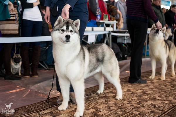 Маламуты тяжеловозы. Предназначение породы - тянуть тяжелый груз, не особо быстро и не далеко. Они мощные, сильные. Взрослая собака весит 35-40 килограммов. У маламутов по стандарту не допустимы голубые глаза.
