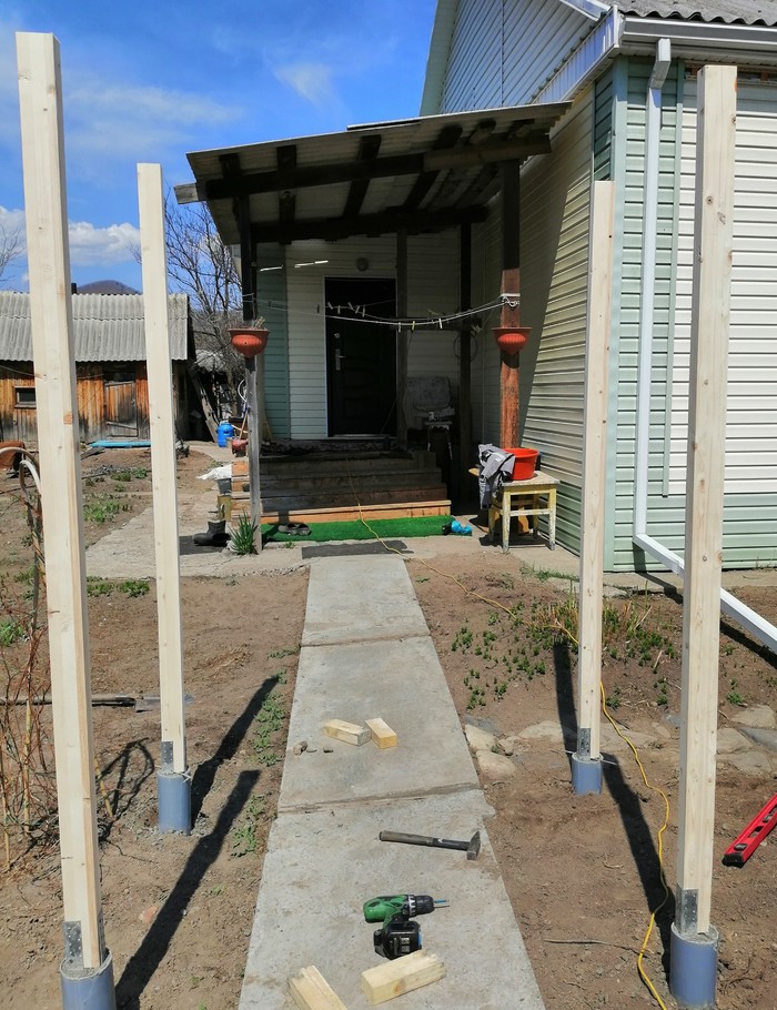 Далее устанавливаю остальные столбы.