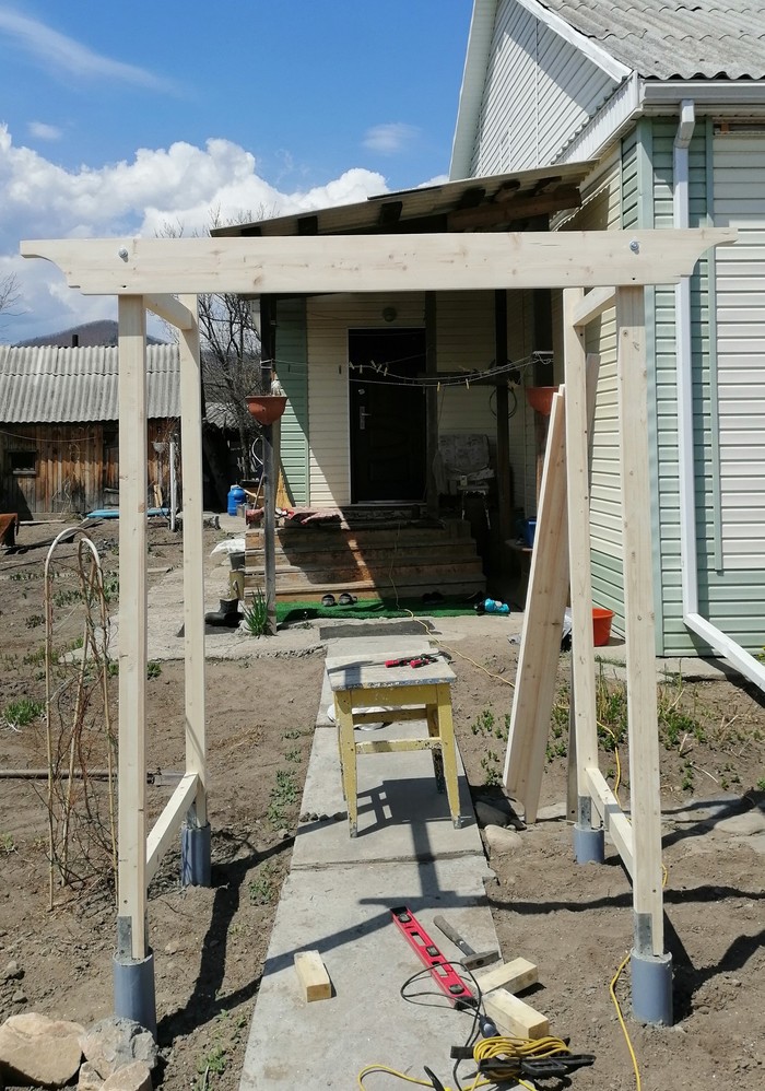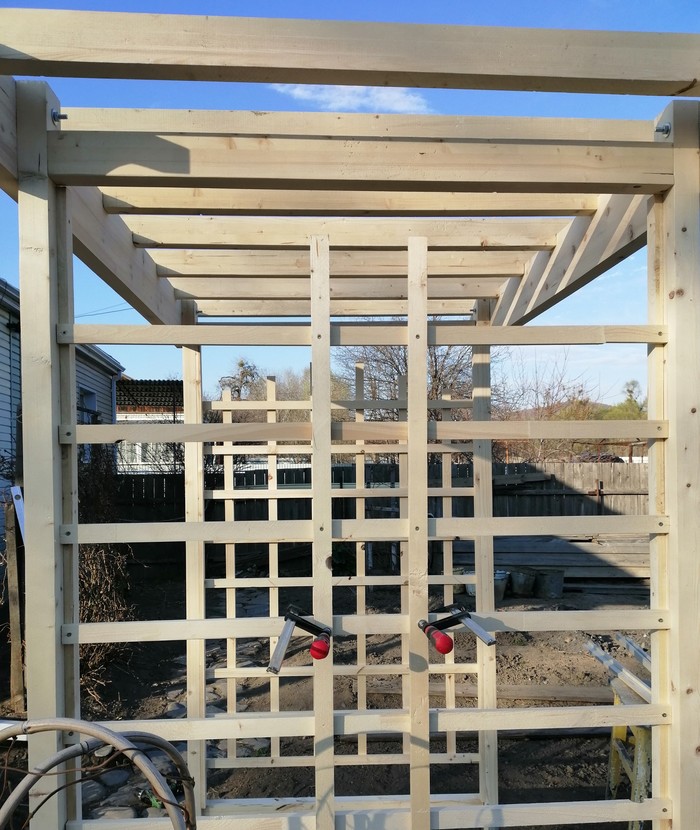 Затем крутим прожилины. Крепил на монтажные уголки без сварки. Плюсом получил четкую перпендикулярность и скорость монтажа. После покраски и прикрутки получили такую картину.