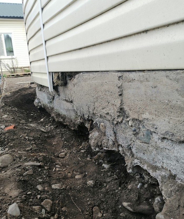 На участке в конце идёт перепад высоты. Обычно у нас льют бетонный ростверк, либо понижают высоту линии верха забора. Понижать я не хотел, т.к. не люблю эти ступеньки. Линия должна быть ровной. Лить бетон, как то уныло, серо, со временем трескается. Решил, попробовать сделать габион. Свежо, у нас никого такого нет. Камни в сетках не бояться подвижек грунта, не трескается, не серо, продувается.