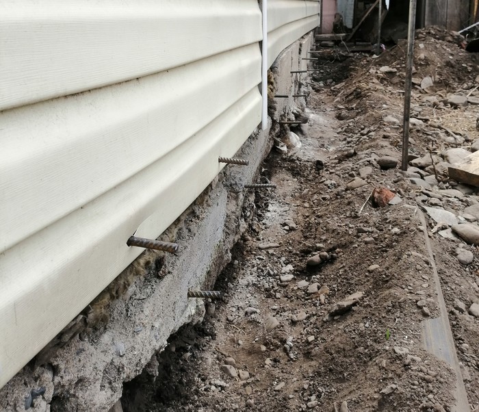 Затем копал яму под закладную для ворот откатных. Схема стандартная 2 в ширину, 1,3 в глубину. Купил б/у швелер 16. Наварил, под мотор сразу основание. Опустил и залил. Между столбами ворот и закладной залил единую ленту с армированием, чтобы если будут подвижки до столбы ровно двигались.