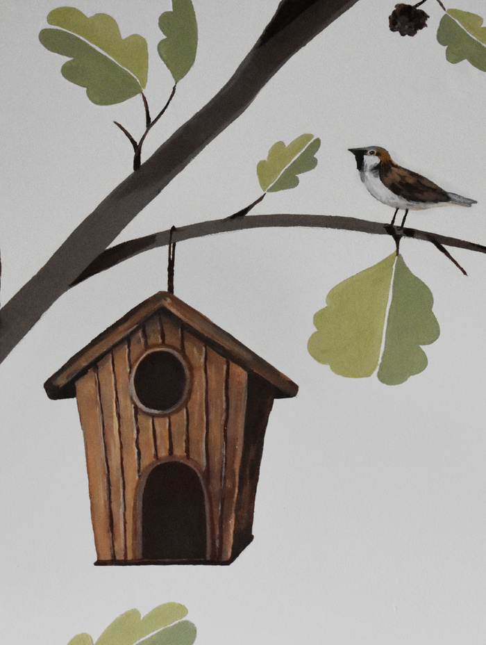 Также в противовес ей я поместила скворечник и маленькую пташку справа.