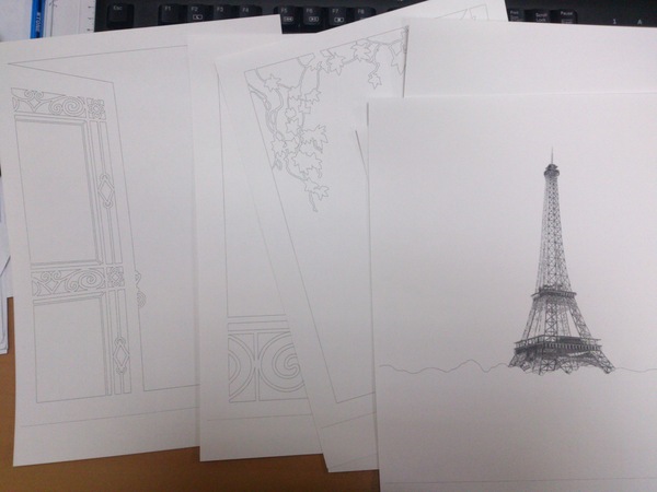 Напечатал для вырезания. Печатал перевернутые эскизы, что бы на лицевой стороне не остались чернила.