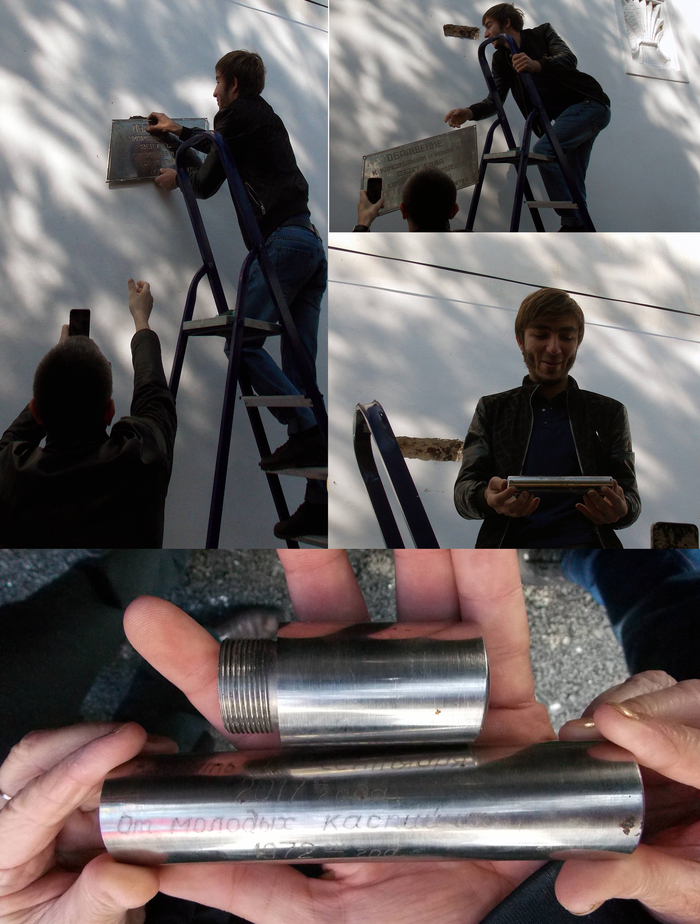 Здесь уже у меня не осталось сил ржать стоять дальше и я ушел. Не знаю, чем закончилось и что в итоге туда заложили и на чем закрепили, но, если этот пост вдруг доживет на просторах Сети до 2067 года, и кто-то из молодежи будущего его встретит - вы знаете, почему на капсуле написано "вскрыть в 2017", а содержимое прочитать в 2067))