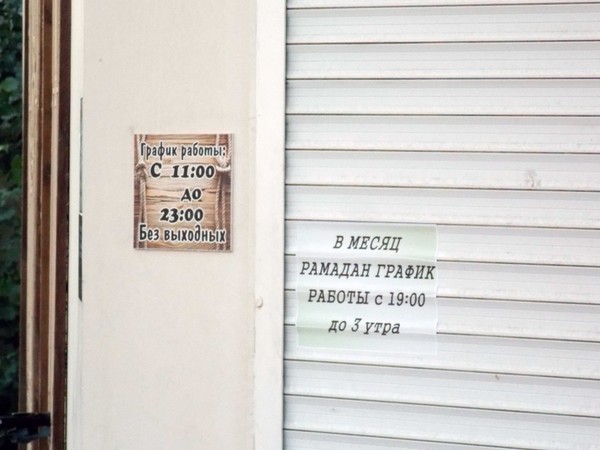 И тут выясняется еще одна интересная подробность. Магазины действительно не против продавать алкоголь в Рамадан (за исключением отдельных, тех, где хозяева истинные мусульмане, ну так они честно и вешают на вывеске под названием подпись «халяль»). И атеист знает, что в такой магазин заходить за сигаретами или алкоголем нет смысла. Но, оказывается, есть некие люди, которые после начала Рамадана ходят по тем магазинам, где такой подписи нет, и намекают владельцам, что если те будут торговать алкоголем в Рамадан, то будут проблемы. В прошлом году даже начали ссылаться на некий указ президента нашей маленькой, но гордой республики. Не знаю, я этого указа не видел, но, даже если он и есть, я искренне надеюсь, что его президенту просто подсунули в куче остальных документов под конец рабочего дня. Ведь нельзя же предположить, что наш президент не знает конституции и, кроме того, сознательно чинит проблемы малому бизнесу? Ведь наши магазины честно исполняют закон от 22.11.1995 №171-ФЗ (ред. от 06.04.2015) и прекращают продажу алкоголя после 20 и до 8. Это ведь практически совпадает с требованиями поста в месяц Рамадан – днем пить нельзя даже воду, а возможное употребление алкоголя «после первой звезды» ограничивает Федеральный закон!
