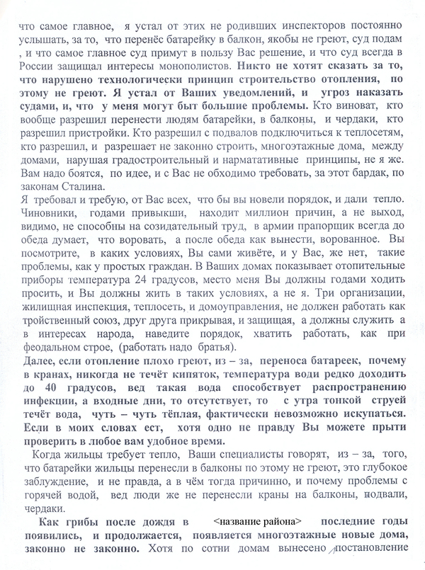 Те жалобы, которые были анонимными, там разговор был короткий. Правило было простое: берешь жалобу, смотришь в начало, смотришь в конец – если нет координат отправителя (я не ФИО имею в виду, а адрес и/или телефон) – сразу в корзину, не читая. Ибо непонятно, кому сообщать о принятых мерах – а следовательно и читать не станем, там вон еще стопка недовольных лежит.