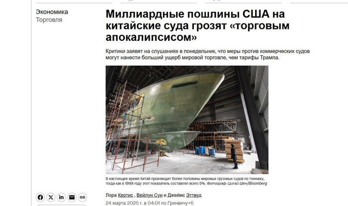 Пошлины США на Китайские суда грозят «торговым апокалипсисом»