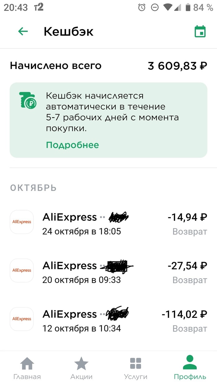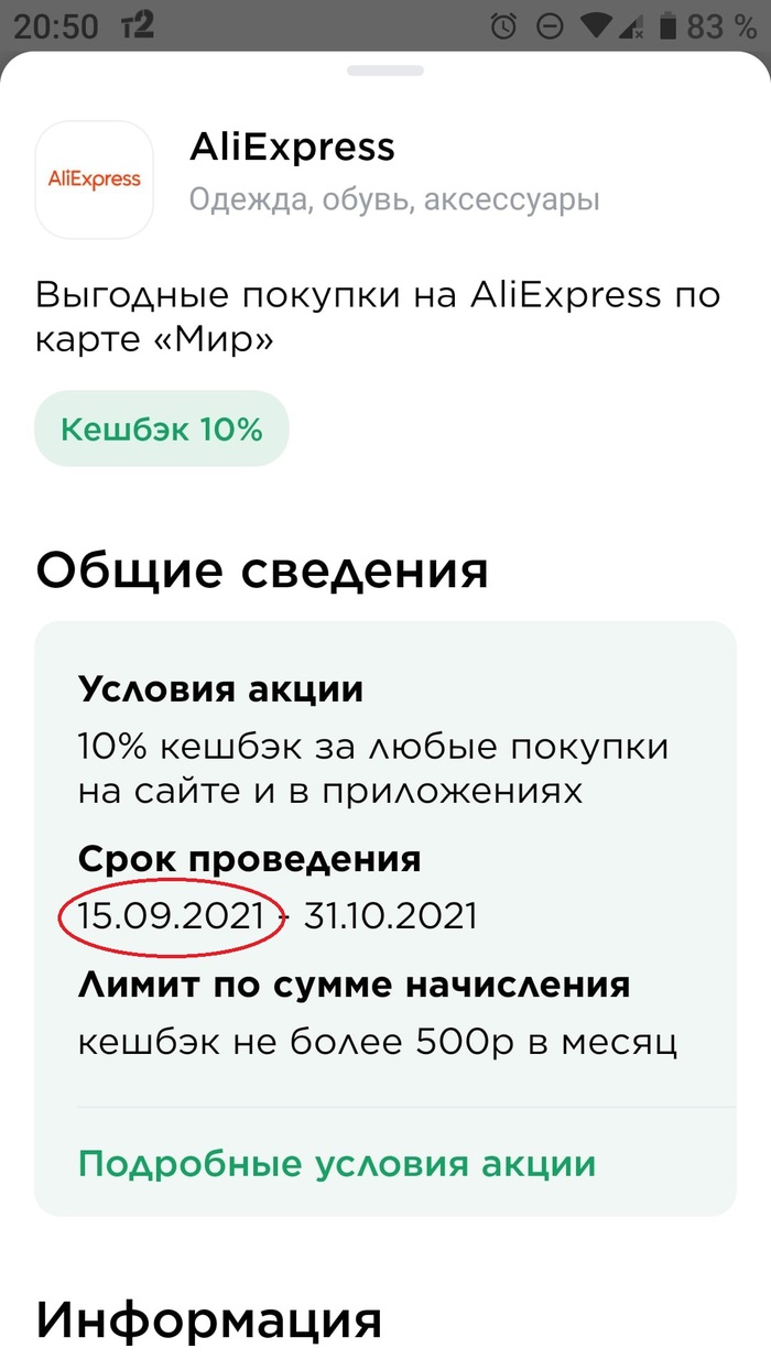 Дано: с 15.09.21 началась акция кэшбэка с Алиэкспресса.