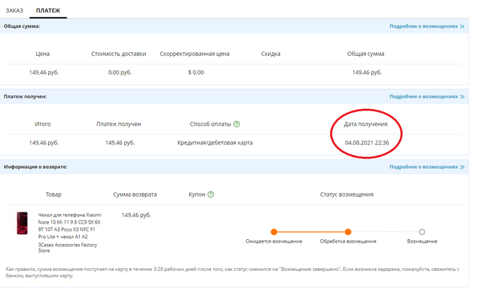 Сегодня увидел, что от 24.10.21 начислили возврат (который делается при отмене заказа, как бы это правильно, да) за заказ, который по сумме 1 в 1 совпадает с упомянутым выше. За который НЕ было начислений. Причём спор ещё даже не окончен, возврата денег даже не было!