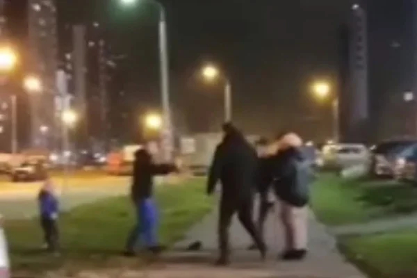Затем один из них несколько раз ударяет мужчину кулаком в лицо, к нему хотят присоединиться другие зачинщики конфликта, сам мужчина пятится назад. Испуганный ребенок отбежал в сторону. На помощь мужчине пришли прохожие.