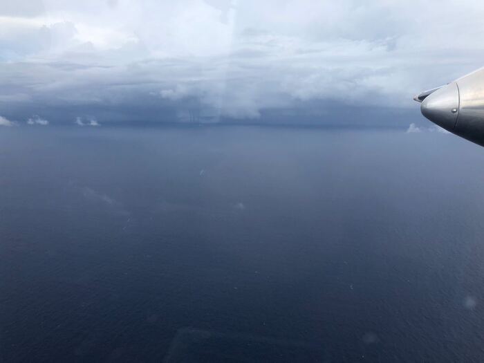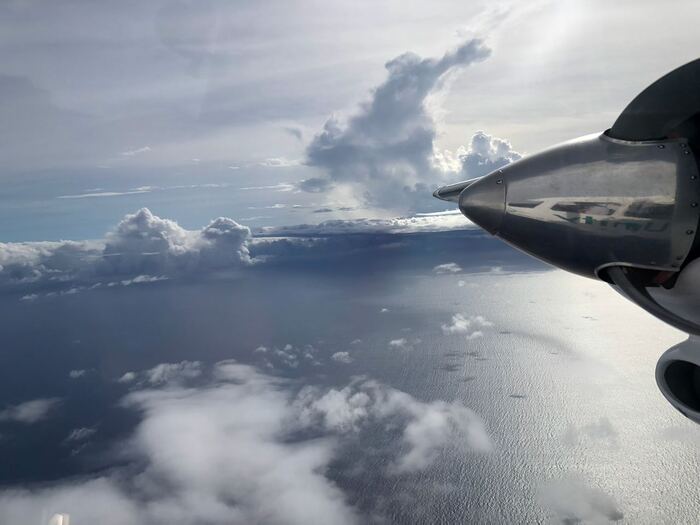 Мы взлетели в сторону Танны, я для себя отметил гораздо большую болтанку, чем привык тут на Вануату. У нас сегодня давление ниже обычного и всё пАрит, собираются грозы и очень сильные восходящие потоки. Уже через пару минут я себя обнаружил в достаточно плотной дымке на высотах от 100 метров до, где-то километра. Такая дымка часто стелится над водой и не мешает, но она редко бывает такой плотной. В этом молоке пришлось набирать, но как только пробились стало виднеться синие небо и достаточно большое количество “столбов” - это грозовые отдельно стоящие тучи, которые могут собраться в систему. Когда набираешь в молоке всё время думаешь, а не столбик ли там дальше стоит. Но есть один секрет - вблизи грозовой активности начинает трещать в наушниках. Единственная проблема - это не сильно работает, когда столб только формируется. Мощные восходящие потоки уже есть, а треска или надвигающейся темноты еще не видно. Так что неприятно это, в молоке лететь. По-хорошему, в таких условиях, если летишь один, нужно включать автопилот, чтобы иметь возможность мониторить не только параметры полета, но еще и всё остальное - движки, самопроверка контрольных карт и прочее. Одному в молоке без автопилота сильно сложнее, потому что нельзя сильно отрываться от пилотирования самолета. Очень быстро можно дезориентироваться, тк организм странно ведет себя в такие моменты. Ладно, я обещал коротко..