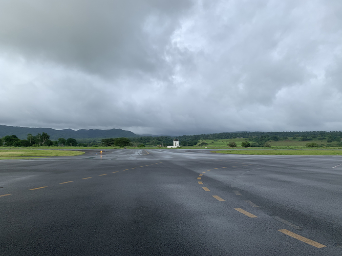 Сам остров - это достаточно маленький риф, по сути торчащий из океана камень, на котором природа придумала длинный плоский кусок, который и стал в итоге полосой. Длина 700 метров, с двух торцов от полосы обрыв, с левой стороны маленькое препятствие, с правой - большое.