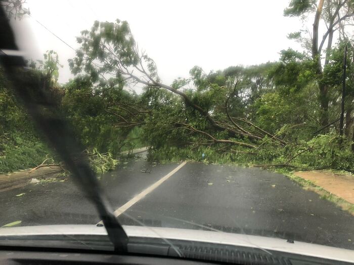Поездка домой из аэропорта тоже была с приключениями, завалило дороги деревьями и заборами, еле доехали…