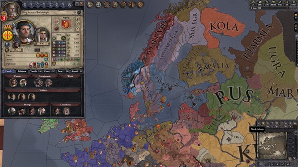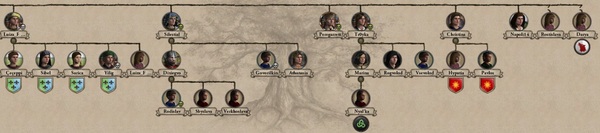 Остальные ветви семьи близки к угасанию. Не исключено, если возникнет перебор земель в лимите, я передам кому-нибудь «лишний» титул, но у Джекара своих сыновей с запасом, так что вероятность подобного исхода невелика (у маршалов свои внуки есть). Впрочем, Crusader Kings – коварная и непредсказуемая игра. Всё ещё может измениться, и, я уверен, не единожды поменяется. Ждите новых выпусков!