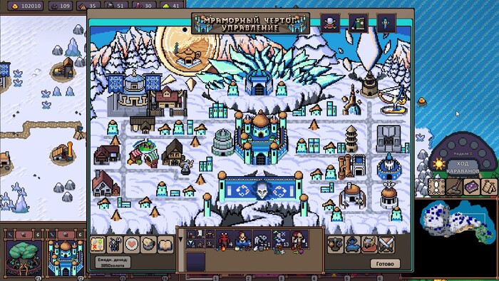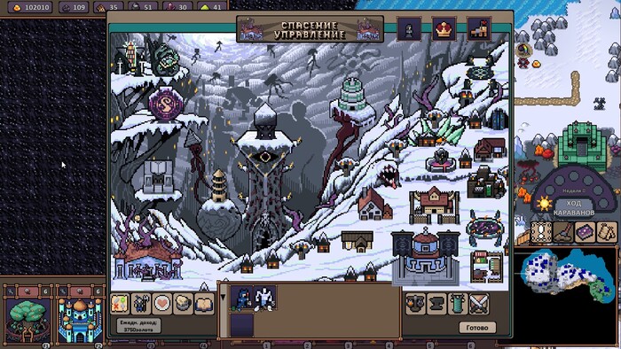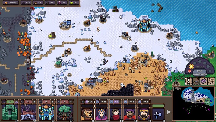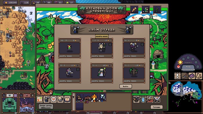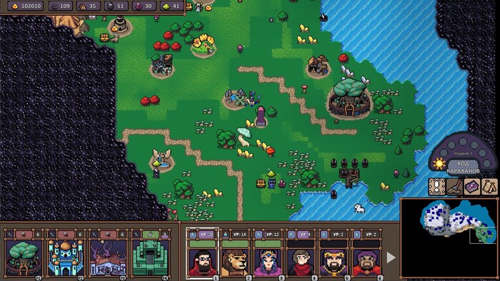 1) Графон у игры не очень. С ним в итоге примиряешься, иначе я не наиграл бы в Hero's Hour уже под 30 часов. Но лично мне не нравится такой вот «крупнозенистый» тип пиксельной графики. Я люблю красивое 2D, но здесь оно такое себе. Разве что стратегическая карта на большом отдалении выглядит симпатично, но всё остальное – нет. Экраны городов мне лично не нравится.
