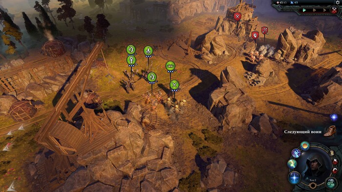 Во-первых, игрок может отдать войскам два приказа: идти в атаку или стоять в защите. Приказ распространяется на всю армию. В любой момент его можно изменить, и этой функцией стоит пользоваться. Конечно, хочется приказать стрелкам укрепиться в защите (чтобы хоть герой не лез самоубиваться), а медленным толстячкам повелеть сразу шагать в атаку, но… перехочется. Это армия. Она может наступать. Она может не наступать. Всё.
