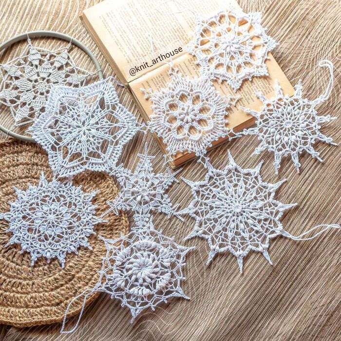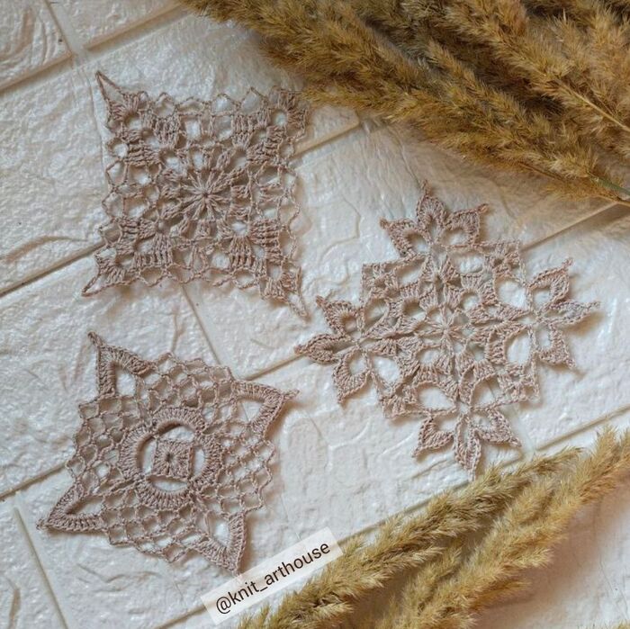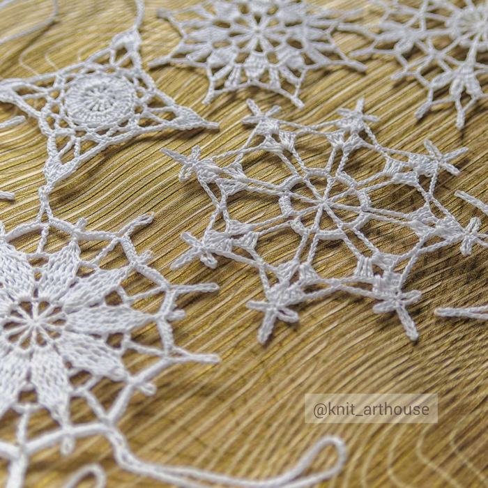 У меня навязались обычные, не рельефные снежинки крючком. Они ничуть не хуже рельефных, наоборот, даже более ажурные и воздушные.