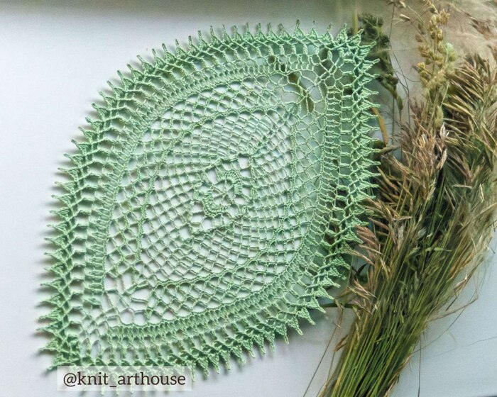 Из остатков пряжи вышла ещё овальная салфетка в центр стола: