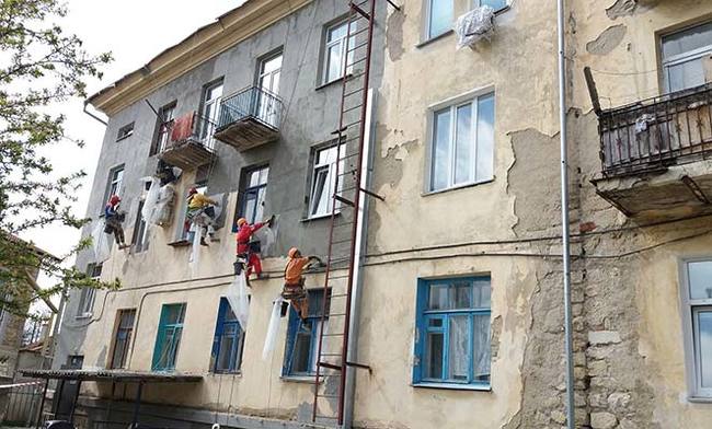 Итак, фасад. Капитальный ремонт фасада начинается с локальной отбивки штукатурно-окрасочного слоя. Всё что треснуло, отпало, бухтит, гремит, шумит и в целом выглядит не эстетично удаляется с пристрастием с поверхности строительных конструкций инструментом которым располагает подрядная организация. Наверно это одно из любимых мероприятий для собственников жилых помещений, наверно можете себе представить усыпанную мусором дворовую территорию, пыль которая замечательно заносится ветром в МОП, а оттуда в квартиры, практически круглосуточный шум и т.д. и т.п.. Стоит знать, что зачастую подрядные организации закрывают в исполнительной документации защиту окон, соответственно если они этого не сделали Вы в праве от них это потребовать. Далее идёт обеспыливание отбитых участков фасада, нанесение грунтовки глубокого проникновения - бетонконтакт ( хотел прикрепить фото нанесенного грунта, к сожалению в интернете фото не нашел, рабочие фотографии прикреплять не буду). После высыхания бетонконтакта начинается оштукатуривание огрунтованных поверхностей. Перед нанесением штукатурных растворов в зависимости от типа основания и применяемых штукатурных материалов необходимо провести подготовку основания СП 71 п.7.2. Требований к штукатурке не так уж и много, человек который несколько раз увидит правильно сделанный фасад легко запомнит как это выглядеть должно, а если свои наблюдения подкрепить теорией, которую можно взять в СП, вероятность правильно принять фасад повышается в разы. Идеальный вариант если подрядная организация сможет добиться от ФКР 100% отбивки фасада и оштукатуривания по маякам.