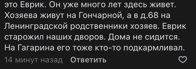 Я сводила её к ветеринару, где выяснила, что ей точно есть пять лет, она стерилизована и вполне здорова, что говорит о её явно домашнем прошлом. Сама она потерялась или ей помогли, мне уже никогда не узнать, но я искренне не понимаю, как можно выкинуть на холод живое существо, которое ещё и никаких поводов для этого не даёт, хотя для такого никакой повод не должен быть оправдан.
