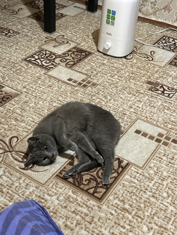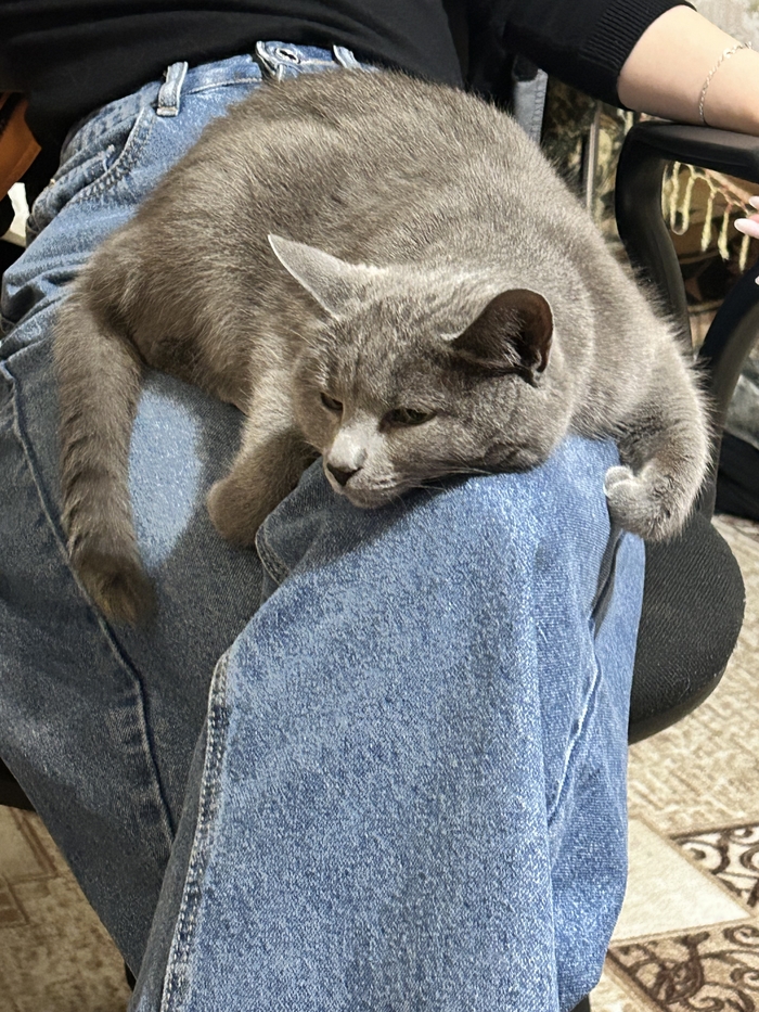 На самом деле история её появления довольно интересная и даже немного мистическая. За неделю до нашей встречи у меня умер старый крыс, такой же серый, как и она. Я человек не особо суеверный, но мне кажется, что это всё неспроста. Кошка сразу пошла на руки, храбро вынесла поездку на троллейбусе и, добравшись до моего дома, быстро в нём освоилась. Она в первую же ночь спала рядом со мной!