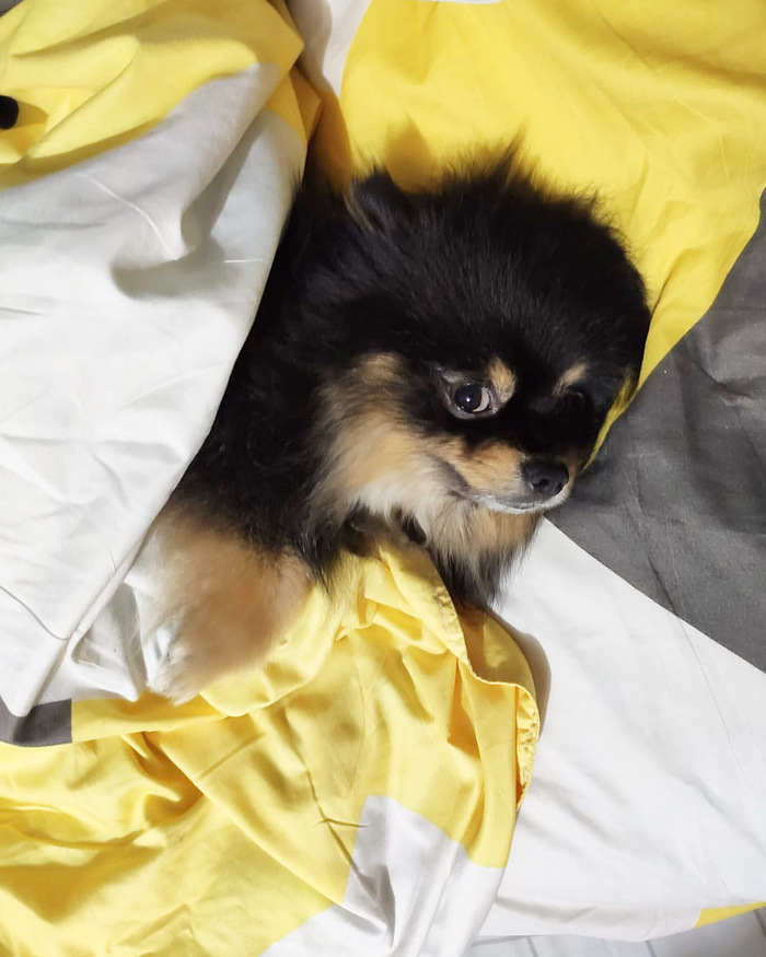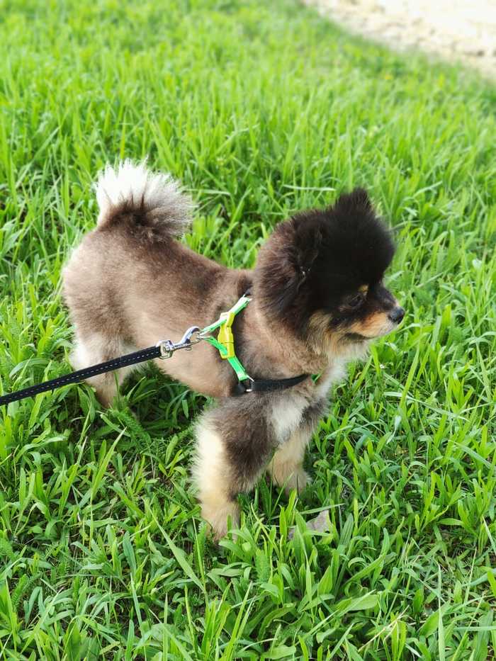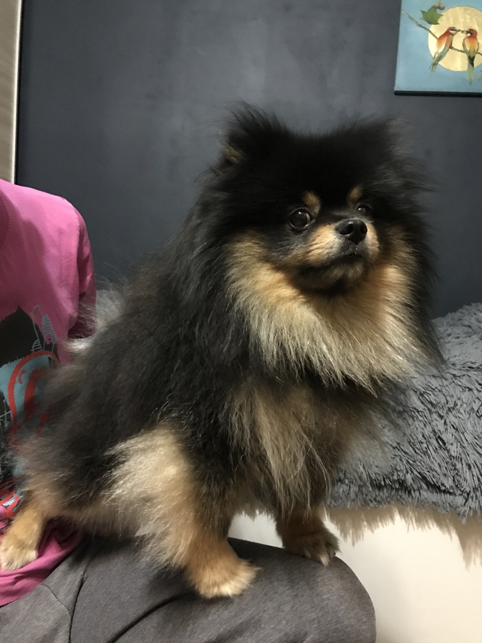 Привет, Пикабуши! Не прошло и года)) наш шпиц Гоша обрастал новой шёрсткой очень долго. Ещё в мае (после стрижки на тот момент прошло 8 месяцев) он был вот таким. Шерсть отросла только на лапках.
