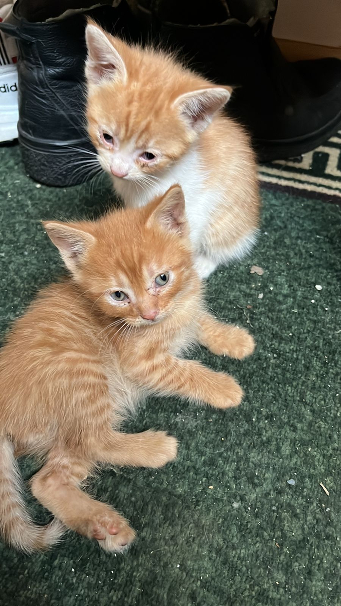 У отца на даче в траве обнаружились котята. Ручные, ласковые, игривые. Осталось двое из четырех, пол не определен, им меньше 2х месяцев, а отец в этом не слишком разбирается. Чуть не попали под триммер. Живут у него в доме, проходу не дают хулиганы. Может нужны кому-то рыжики?