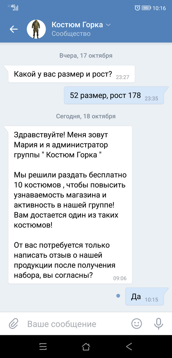 От скуки кликнул на ссылку с халявой. Халява очень сомнительная, так как предполагала получение бесплатного костюма горка-3. Оказалось разводом. Из забавного размер предполагаемой выгоды мошенников....который в процессе даже снизился.
