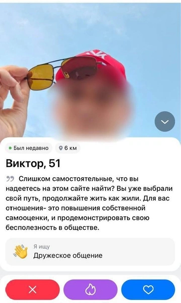Как с вами знакомиться блять, на улице ходите все, как ядовитые рыбы, с надписью на ебале "как я от вас свиней устала, не могу просто погулять по парку, обязательно полезут" в интернете "я охуенная, если ты не арабский шейх, 21 год с кубиками и не подаришь мне нефтяную вышку листай дпльше" а если и будет матч, то игнор или диалог в духе "развлекай меня раб, а как я заскучаю, дерну рычаг и ты молча упадешь в чс".