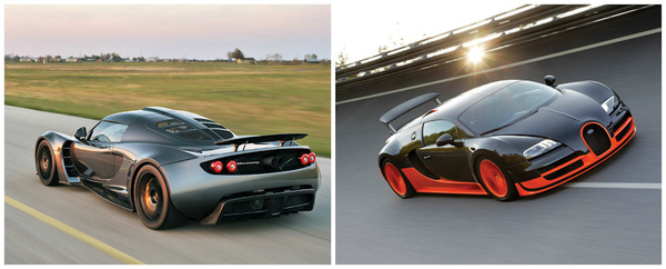 Самый быстрый серийный автомобиль, допущенный на дороги общего пользования: Hennessey Venom GT, Bugatti Veyron Super Sport