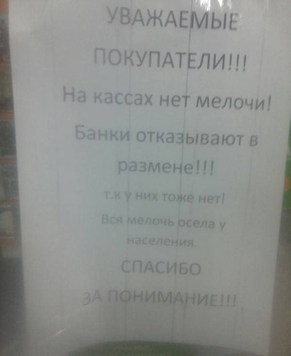 11 kolombo0203 Коротко об обстановке в стране 8 лет назад Фото сделано в одном из супермаркетов "Абсолют" г.Улан-Удэ Показать полностью 1 [моё] Кризис Магазин