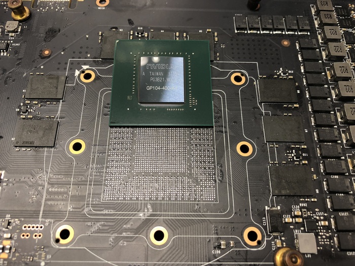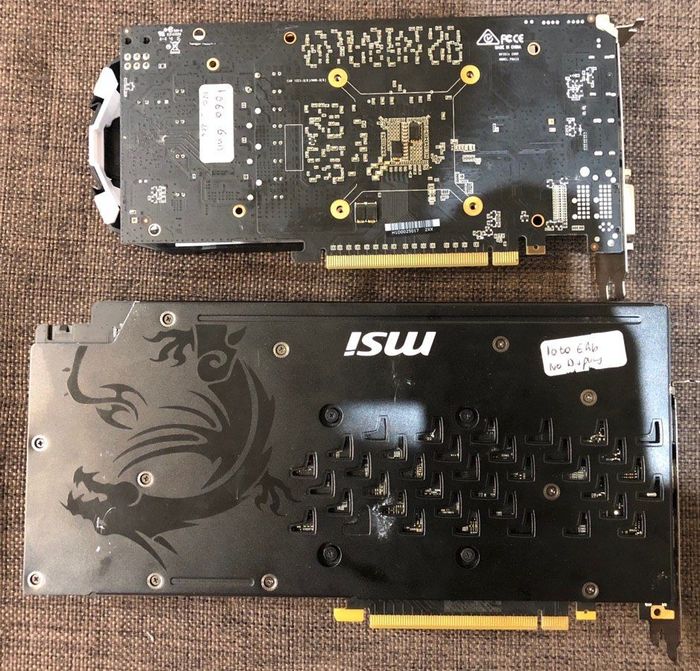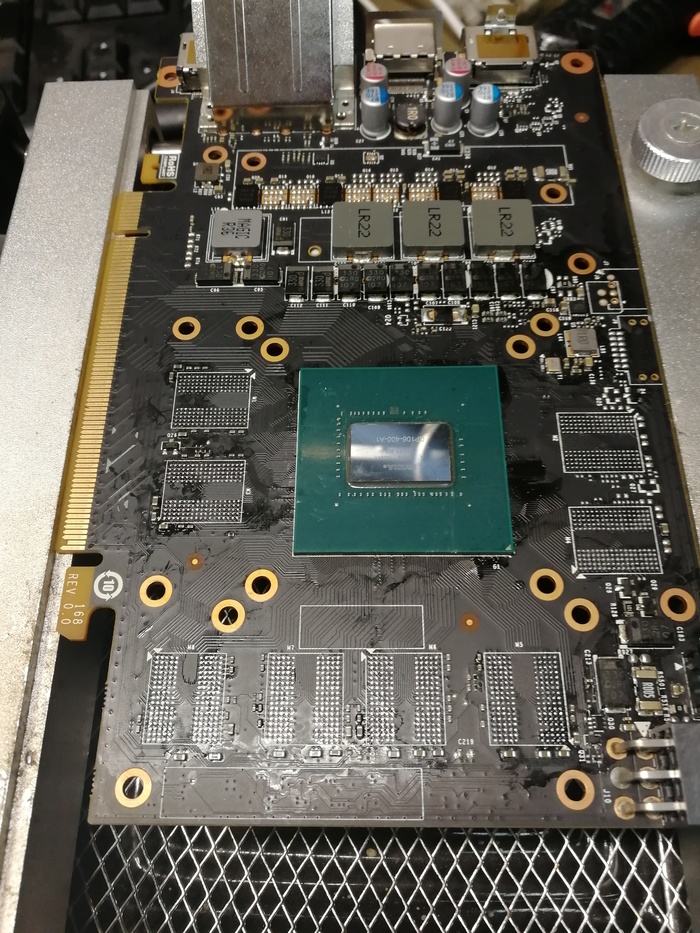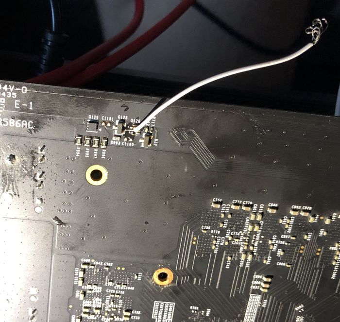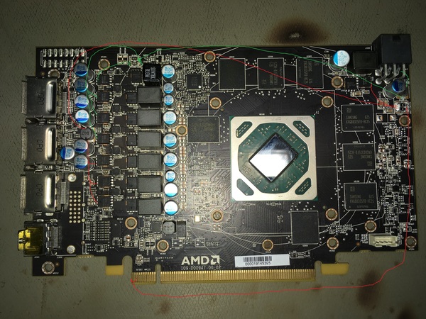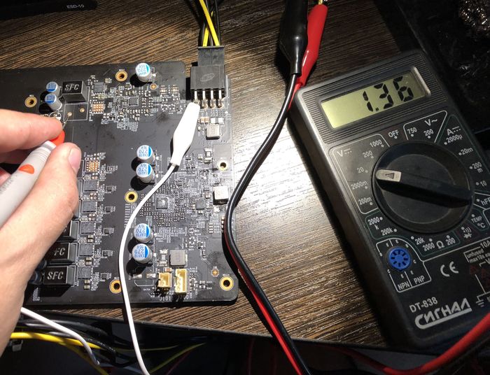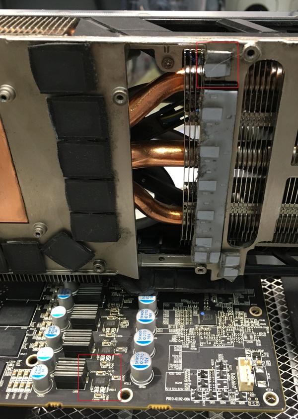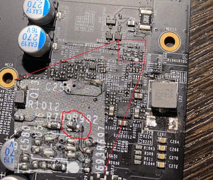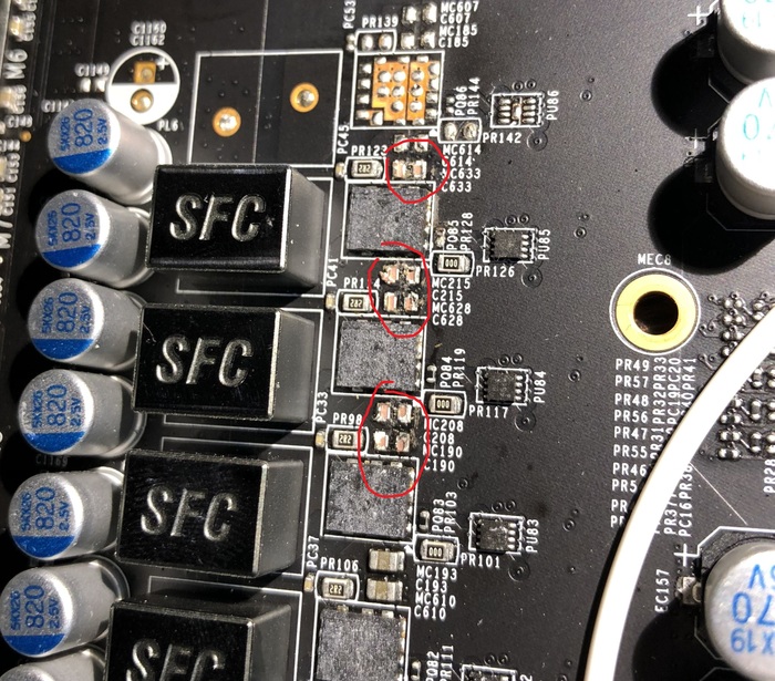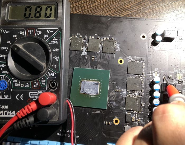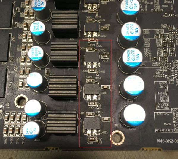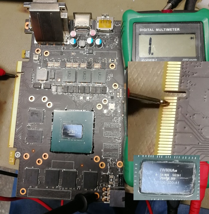 Обе GTX1060 6GB от MSI. У беленькой все питания поднимаются, но карту компьютер не видит, замена чипа, ничего интересного. А вот красная не поднимала питание памяти, когда все остальные напряжения были.