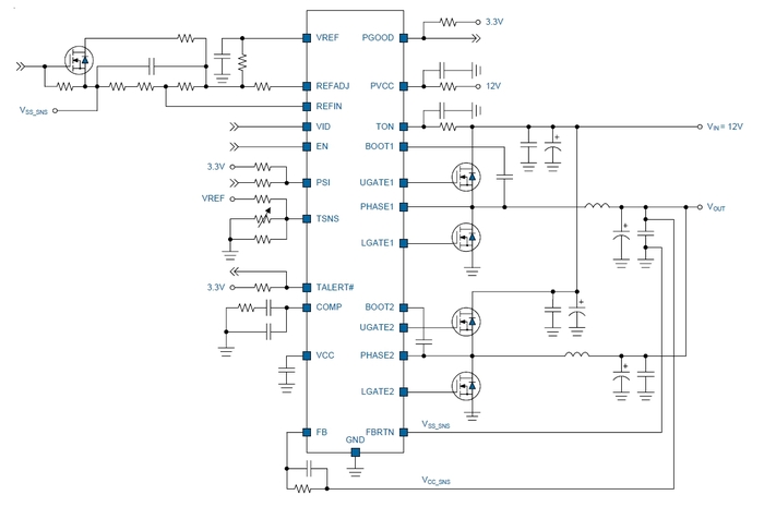 Преобразователь на питании памяти построен на микросхеме uP1641, это двухфазный понижающий ШИМ.