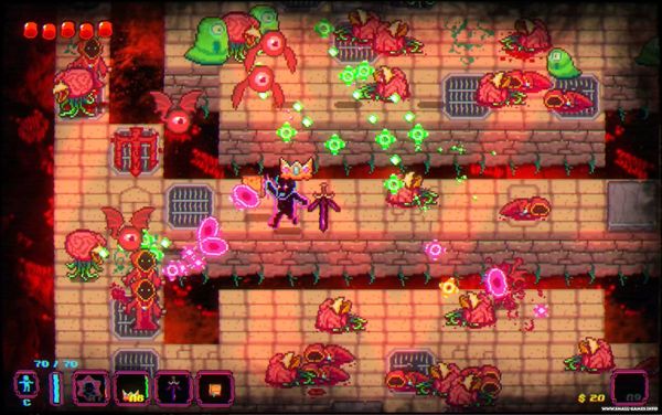 Но несмотря на малое количество местные монструозины весьма интересны. Тут есть и мелкие и быстрые кусаки, и мутирующие студенты, что слабы на ранних стадиях превращения, а на поздних могут выдать на орехи по первое число, и ползающие по потолку насекомообразные существа, и нечто из нескольких человеческих тел, и огромная жирная бабища из бухгалтерии что является маткой для более мелких слизней, в общем все что нужно чтобы и разнообразно и монстры не надоедали. И вся это мерзость окружена темной аурой, что в некоторой степени поглощает урон, так еще они и распространяют эту ересь вокруг себя, чем изрядно отравляют жизнь героям.