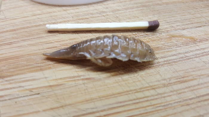Ковыряем вилочкой, вначале думал что это сгусток глистов или рыбка с ножками. Хорошо что мобильный был рядом на столе - успел зафоткать.