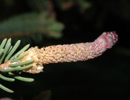В возрасте 15-20 лет у молодых Picea начинают созревать шишки. Женские (красные или зеленые) формируются на конце ветки, а чуть ближе к стволу образуются мужские (мелкие и желтоватые). Как только пыльца покидает мужскую шишку, она тут же начинает парить в поисках женской. Оплодотворенная шишка растет до конца осени, к этому времени в ней уже сформируются семена. Но достигнуть земли маленькие елята смогут лишь весной, когда шишки начнут осыпаться.